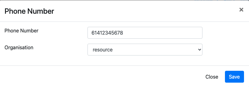 The dialog then allows you to enter the number and select the organisation.