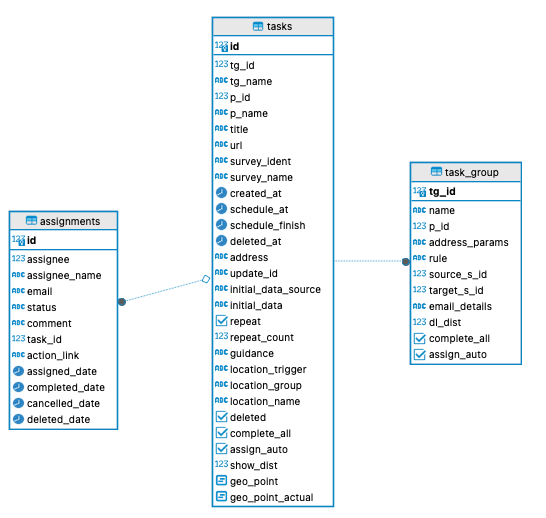 Assignments hold details on people who have been assigned to complete a task including: