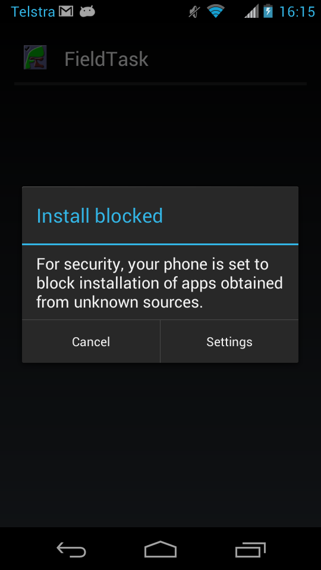 However if you are installing fieldTask on devices that will be shared then you definitely do not want to use your own google account as the phone user will have access to your gmail. Also setting up google accounts just to install the app is tedious. In this case a better approach is to download fieldTask from the server.