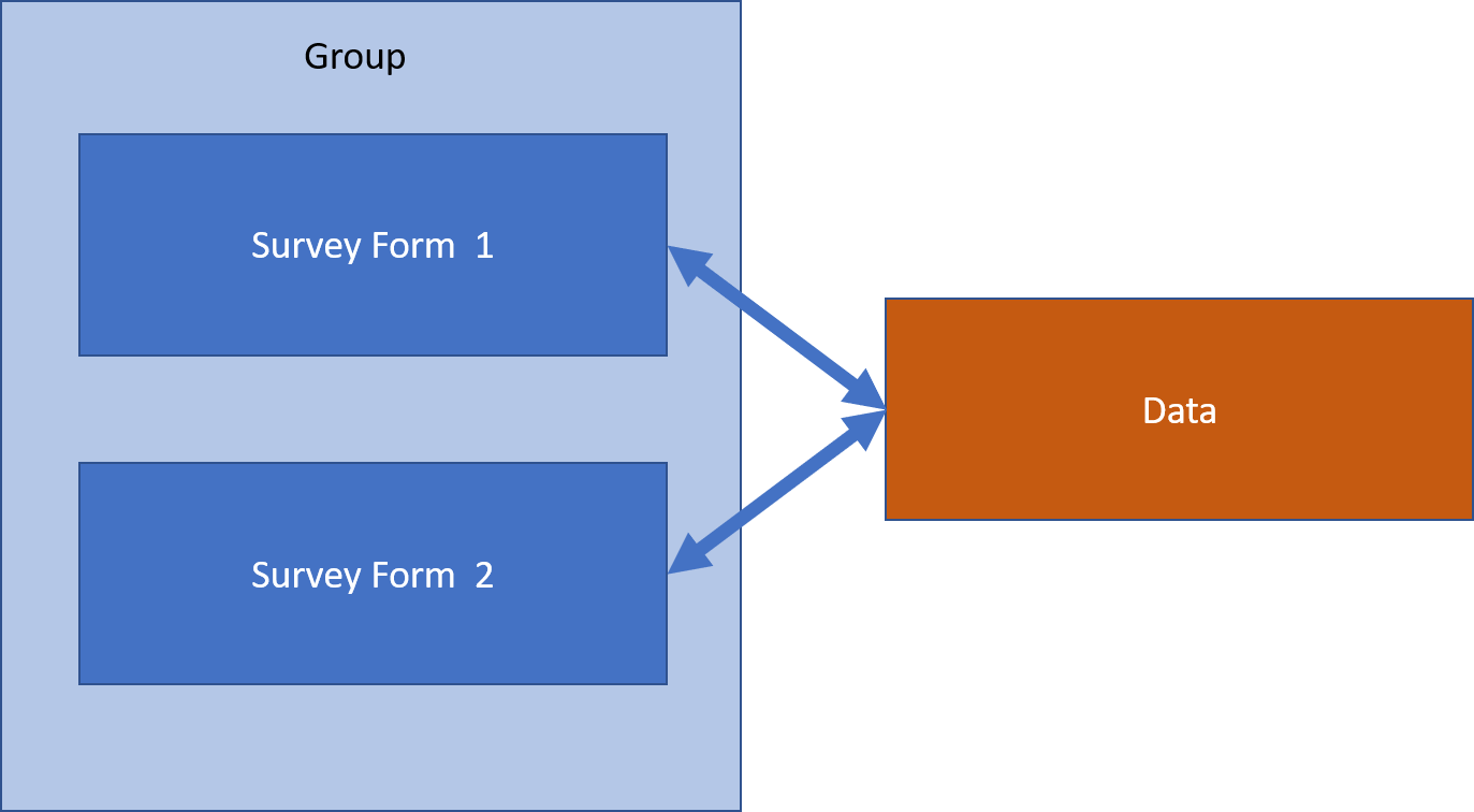 When you load a new Survey Form on to the server a one to one relationship will be created between that form and its data. Each question in the form will have a column in the data table that stores its answer. If you load another survey, even one that is almost identical to the first, then a new data table will be created and the two sets of data will not be linked in any way.