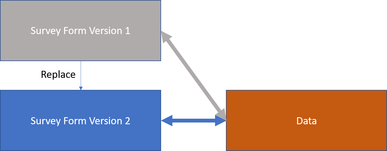 In this scenario you want to change the survey over time. You might want to add, delete or change specific questions. You don't want to keep the old survey form but you do want to keep any data that was collected using that survey form.
