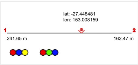 In the first example above the locations of the cable endpoints and the faults will be in a geocompound question called "c1". In the second example the geopoint question p1 will identify the start of the cable or pipe, p2 the end and f the location of the fault(s). There will be multiple faults if "f" is in a repeat. In the third example the GPS coordinates of the second pit in the geocompound question c1 will be displayed.