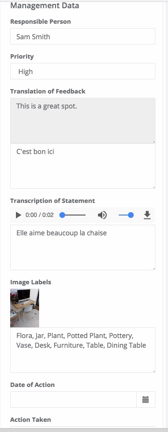 - Transcription of the issue statement. The manager can play the audio statement and type the text