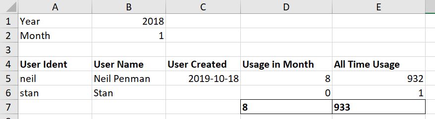 GET /api/v1/misc/adminreport/usage/(int: year)/(int: month)/(string: userIdent)